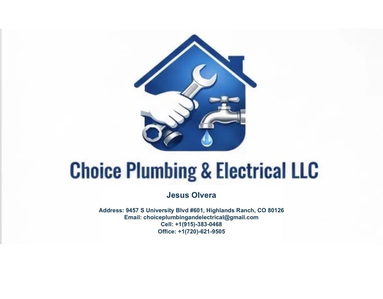 Contact Us Interested in a quote? Contact us today! choiceplumbingandelectrical@gmail.com(720) 621-9505